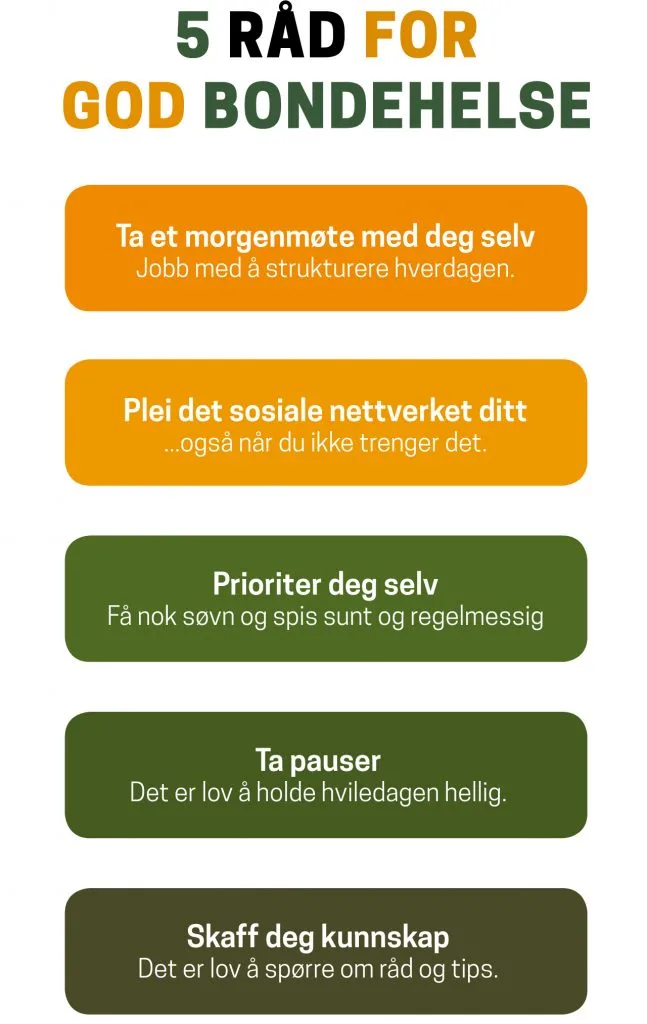 – Noen ganger holder det at vi bare spør og at bonden får luftet ventilene. Andre ganger er det behov for å koble på økonomisk rådgivning, bedriftshelsetjenesten eller være døråpner til offentlig helsevesen, sier han.