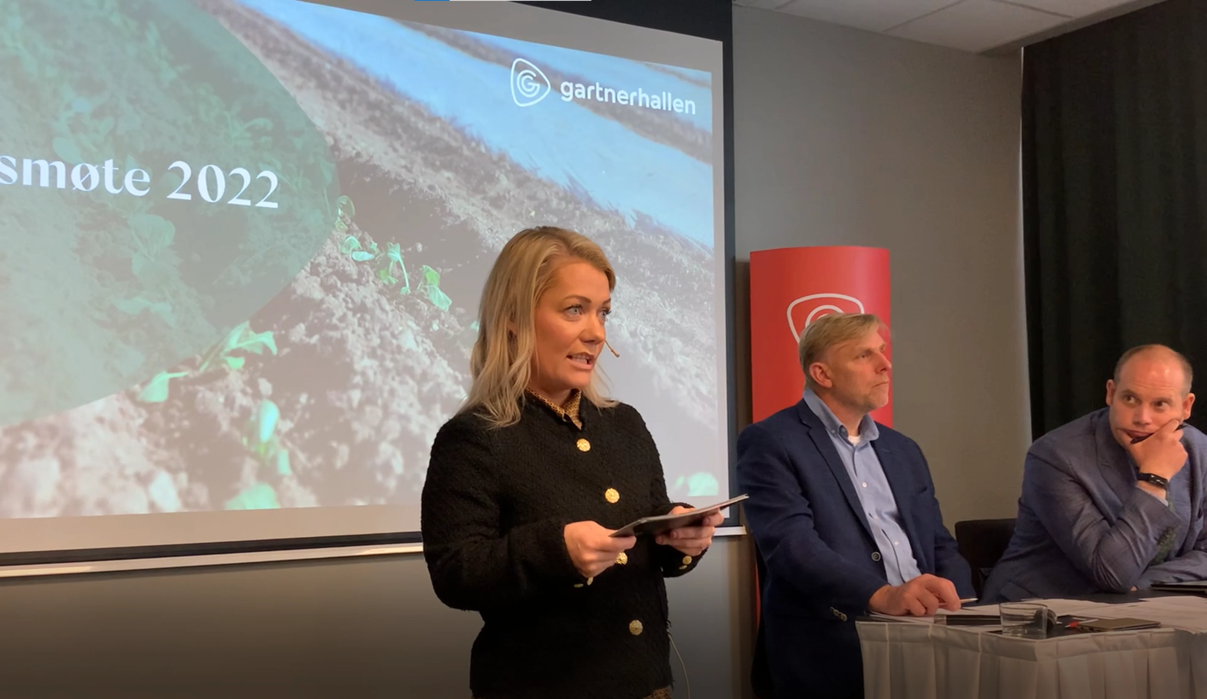 Landbruks- og matminister Sandra Borch var invitert til å holde innlegg på årsmøtet i Gartnerhallen SA torsdag 9. juni.