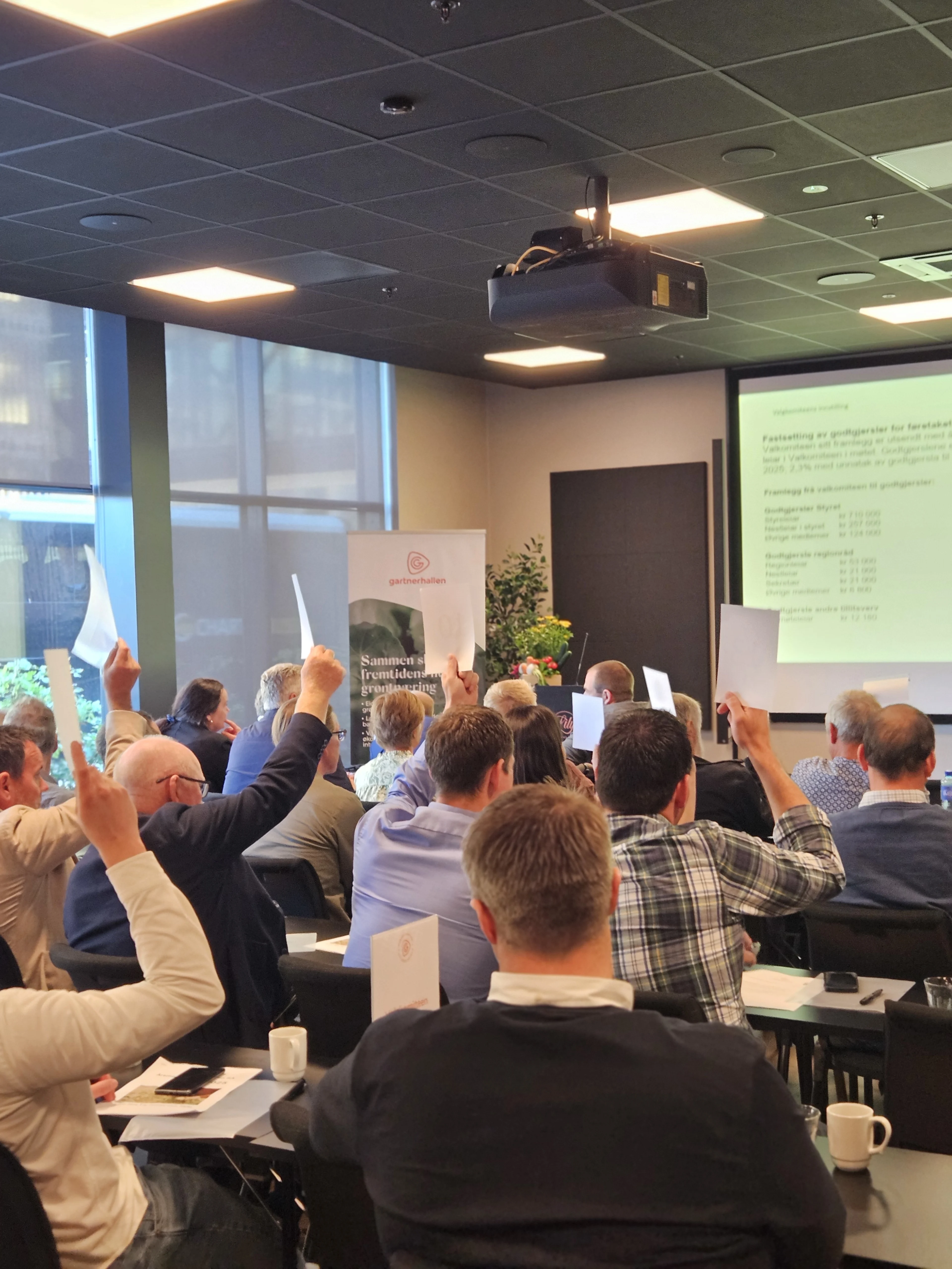 Torsdag 12. juni var årsmøteutsendinger fra hele landet samlet til årsmøte i Gartnerhallen SA. Styreleder Nils Olve Gillund innledet møtet med å takke for innsatsen i 2024. Også dette året var preget av utfordringer som følge av vær og klima, som påvirket både volum og kvalitet på våre produkter. Vi fikk allikevel en omsetningsvekst målt i verdi, selv om norskandelen gikk noe ned. Gillund fremhevet viktigheten av og styrken i det å stå sammen.